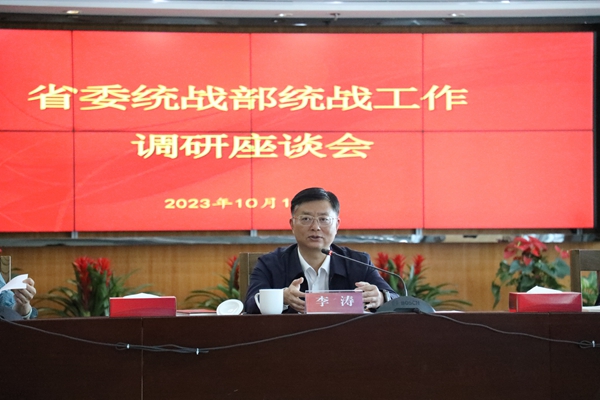10月18日上午,省委统战部副部长李涛来我行开展统战工作专题调研座谈。总行党委副书记、行长、副董事长刘战明出席座谈会并讲话,总行党委委员、副行长周玉坤出席座谈会并作工作情况汇报。