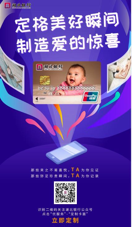 私人定制借记卡以湖北银行现有的借记卡产品为基础,依托线上途径,在卡面外观设计方面进行新尝试,使用较为复杂的制卡工艺(流光、雕刻等),制作满足客户需求的借记卡。